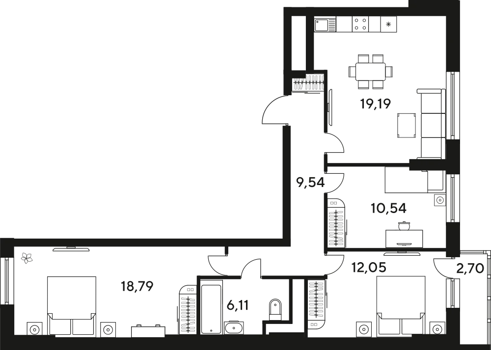 3-комнатная 80.7 м2