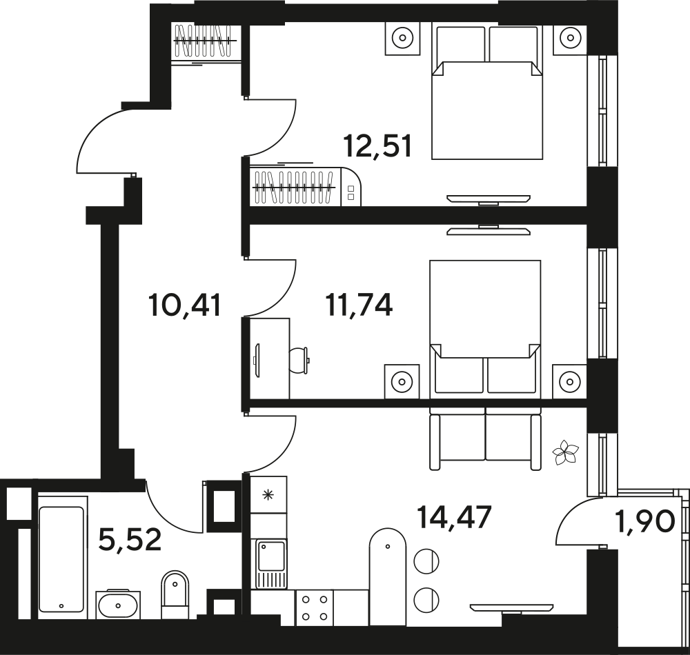 3-комнатная  56.7 м2