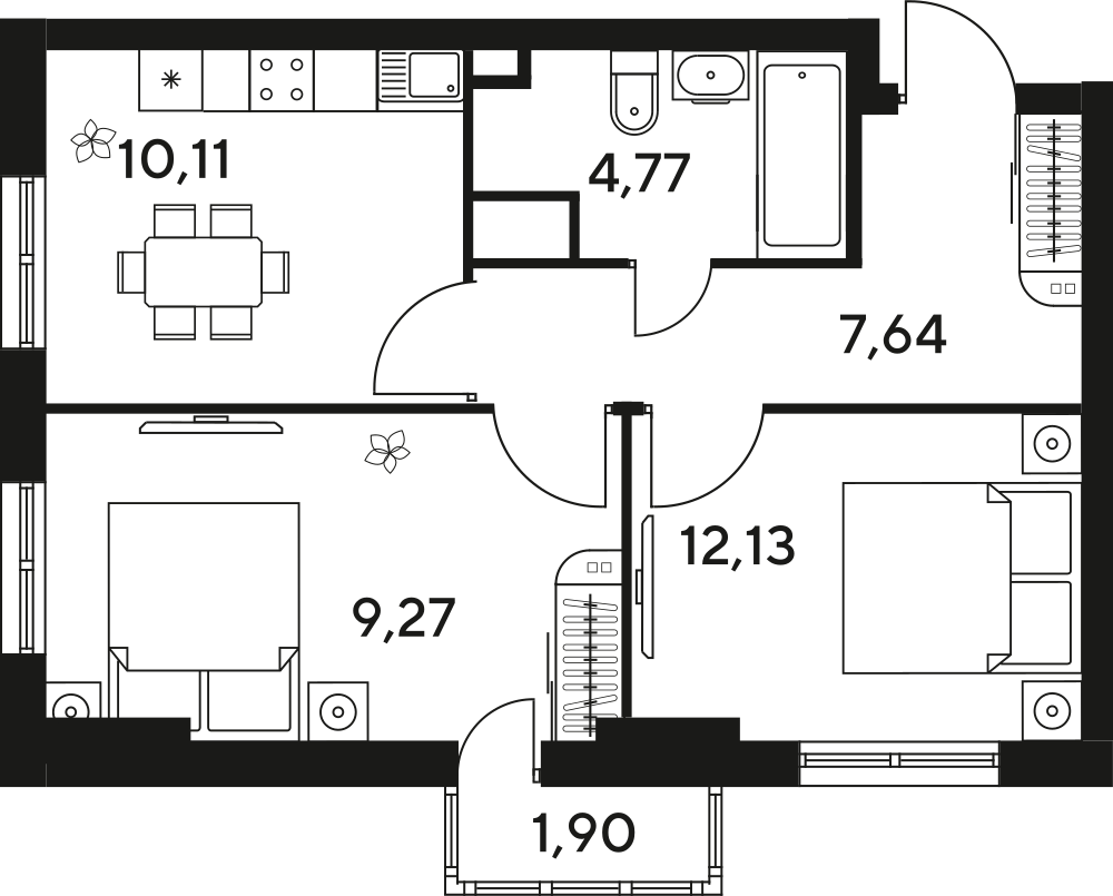 3-комнатная  49.62 м2