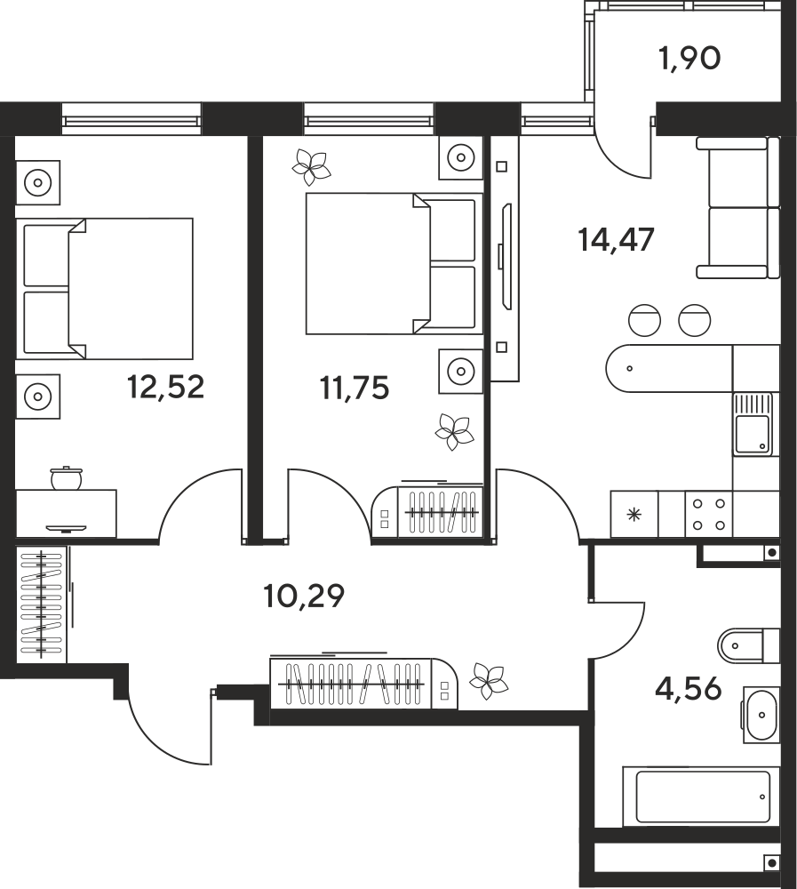 3-комнатная 61.2 м2