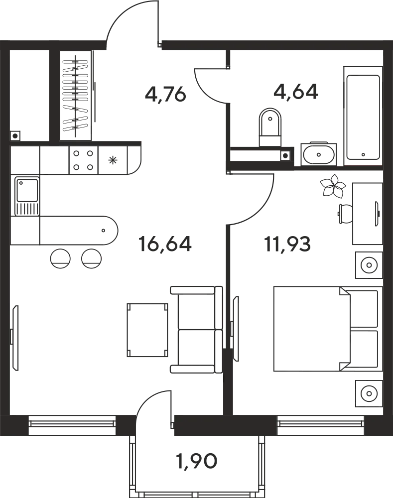 1-комнатная  36.46 м2